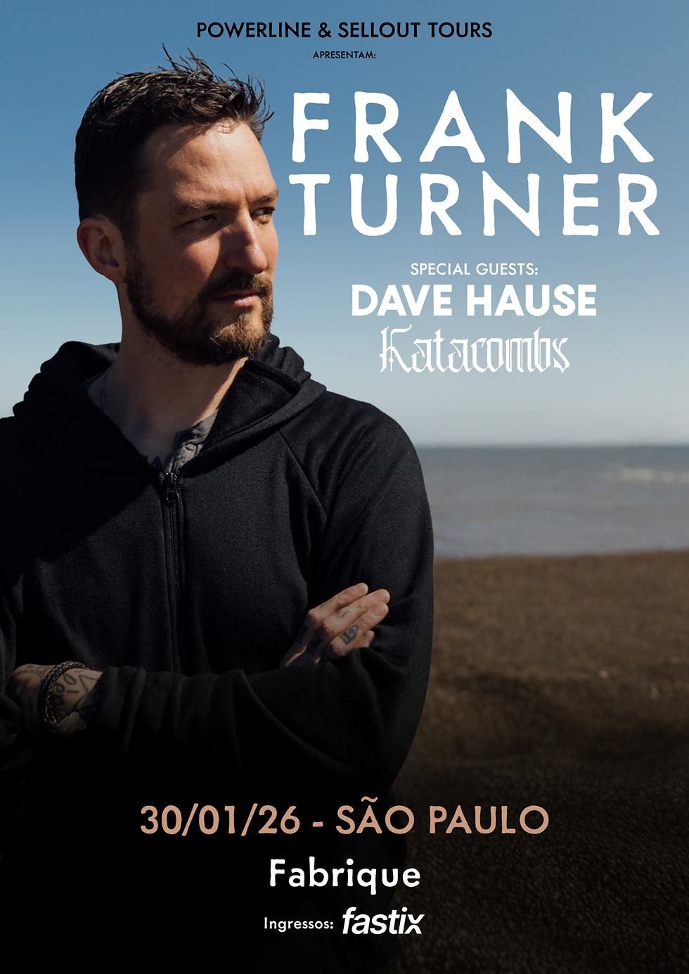 Responsável por cinco álbuns consecutivos no Top 10 das paradas oficiais do Reino Unido, Frank Turner anuncia a tão esperada turnê latino-americana para janeiro e fevereiro de 2026, com três shows no Brasil: São Paulo (30/1), Brasília (31/1) e Curitiba (1/2). A realização é da Powerline Music & Books junto à Sellout Tours.